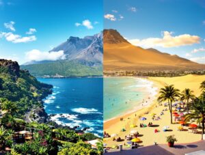 På Teneriffa skiftar landskapet snabbt: fuktiga skogar, karga lavafält och stränder i flera färger finns på samma ö. Det hänger ihop med vulkanisk historia och med vindar som pressas upp över höjdskillnaderna och styr väder och växtlighet, så kontraster kan ligga relativt nära varandra.
